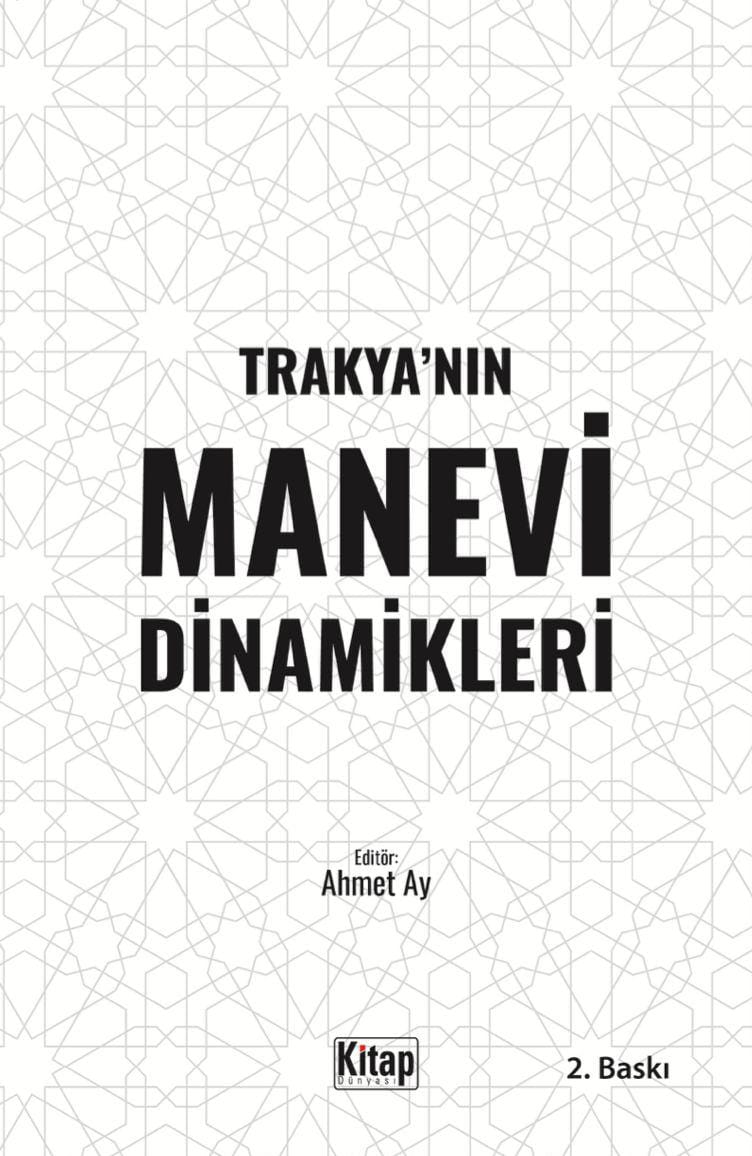 ‘TRAKYANIN MANEVİ DİNAMİKLERİ’ 2. BASKI, OCAK 2026 / İSTANBUL Kitap Dünyası Yayınlarından ilk baskısı Eylül 2023’de çıkan ‘Trakya’nın Manevi Dinamikleri’ yeniden basılarak okuyucu ile buluşmuştur. Bu çalışmamızda; Trakya’nın farklı yerleşim birimlerinde bulunmuş, bir kısmı öğretmen, din görevlisi gibi resmi görevler de üstlenmiş, yüce idealler peşinde koşan az sayıda insanın hayat hikâyesini, kendini toplumun iyiliğine adayışını ve özellikle yeni neslin köklerine bağlı, kendi medeniyet değerleriyle yetişmesi için yapmış olduğu olağanüstü çalışmaları bulacaksınız. Bu nitelikli insanlar, yakın tarihimizin bir hayli sıkıntılı dönemlerinde, içinde bulunduğu toplumun çocuklarına, gençlerine imkânlar ölçüsünde rehberlik etmiş, onların eğitimiyle yakından ilgilenmiş ve milletimizin hafızasında unutulmaz izler bırakmıştır. Gönlümüz arzu ediyor ki, mezkûr nitelikli insanların hayatını, yapmış olduğu çalışmaları, toplum içindeki öncülüğünü yeni yetişen nesle aktaralım. Bu maksatla çıktığımız yolda büyük bir emek ve özveriyle bize yardımcı olan, yazılarıyla katkı sunan, kullandıkları fotoğraf ve görseller ile eserimizi zenginleştiren hocalarımıza ve eğitimci arkadaşlarımıza teşekkür ediyorum. Atalarımız, ‘niyet hayır, akıbet hayır’ demiştir. Biz de iyi niyetle yola çıktık ve imkânlar ölçüsünde bölgemizin öncü şahsiyetlerini tespit ederek tarihin tanıklığı içinde göstermeye çalıştık. Gayret bizden, başarı Allah’tandır.